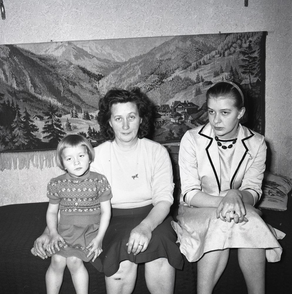 Lára Sigurðardóttir, Ásthildur (Ásta) Magnúsdóttir og Hólmfríður Sigurðardóttir í Tjaldanesi í Saurbæ.