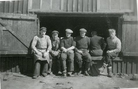 Frá vinstri: Vikar Árnason sjómaður í Keflavík, Þorvaldur Halldórsson skipstjóri frá Vörum í Garði er lengst til hægri á myndinni. Nöfn hinna eru óþekkt.