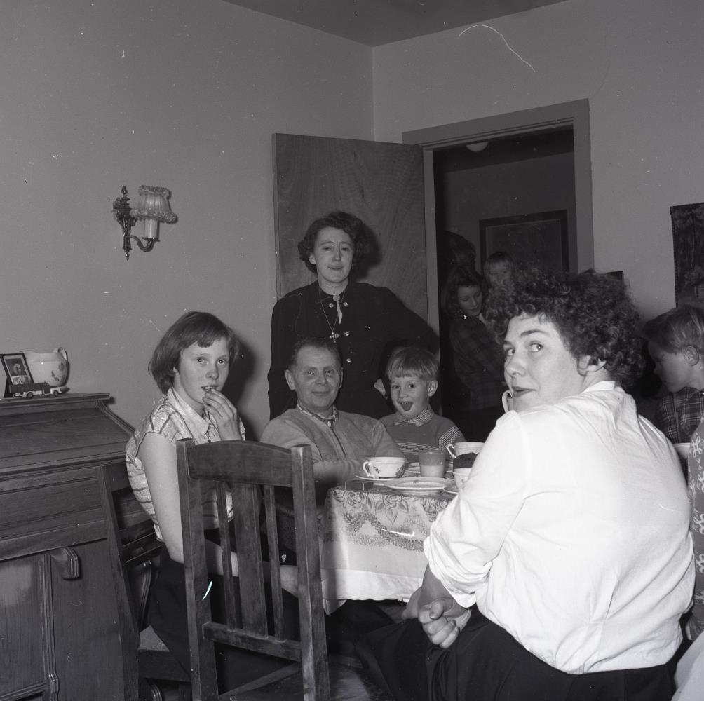 Frá vinstri. Ragnhildur Ellertsdóttir á Saurhóli, óþekktur karlmaður, Halla Rannveig Halldórsdóttir stendur í dyrunum, óþekktur drengur og Hildur Eggertsdóttir í Tjaldanesi.