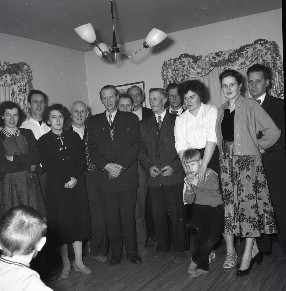 Frá vinstri. Helga Lárusdóttir í Tjaldanesi, Ellert Kr. Halldórsson á Saurhóli, Halla Rannveig Halldórsdóttir á Saurhóli, Halldór Ólafsson í Tjaldanesi, Jóhannes V. Jensen í Lambanesi, Óþekkt, Sigurður Lárusson í Tjaldanesi, Steingrímur Samúelsson á Heinabergi, Ketilbjörn Magnússon í Tjaldanesi, Hildur Eggertsdóttir og Eggert Kristinsson í Tjaldanesi, Margrét Rögnvaldsdóttir og Guðmundur Hjálmarsson á Ásum.