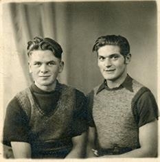 Eggert Jónsson frá Kothúsum í Garði og Kjartan Ásgeirsson frá Bjarmalandi í Garði. Myndin líklega tekin á sjómannsárum þeirra.