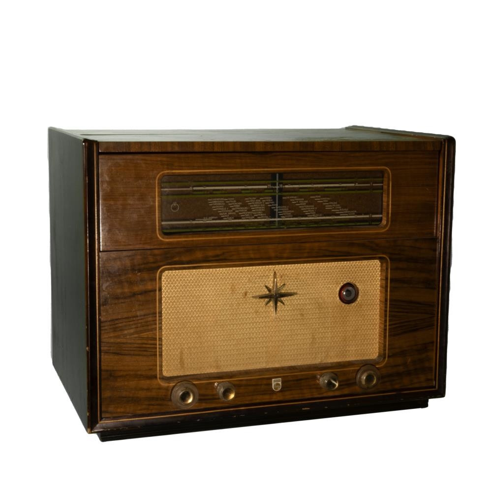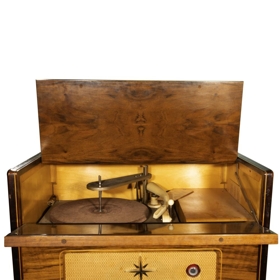 Útvarp og þegar opnað að ofan og þá er þar plötuspilari.