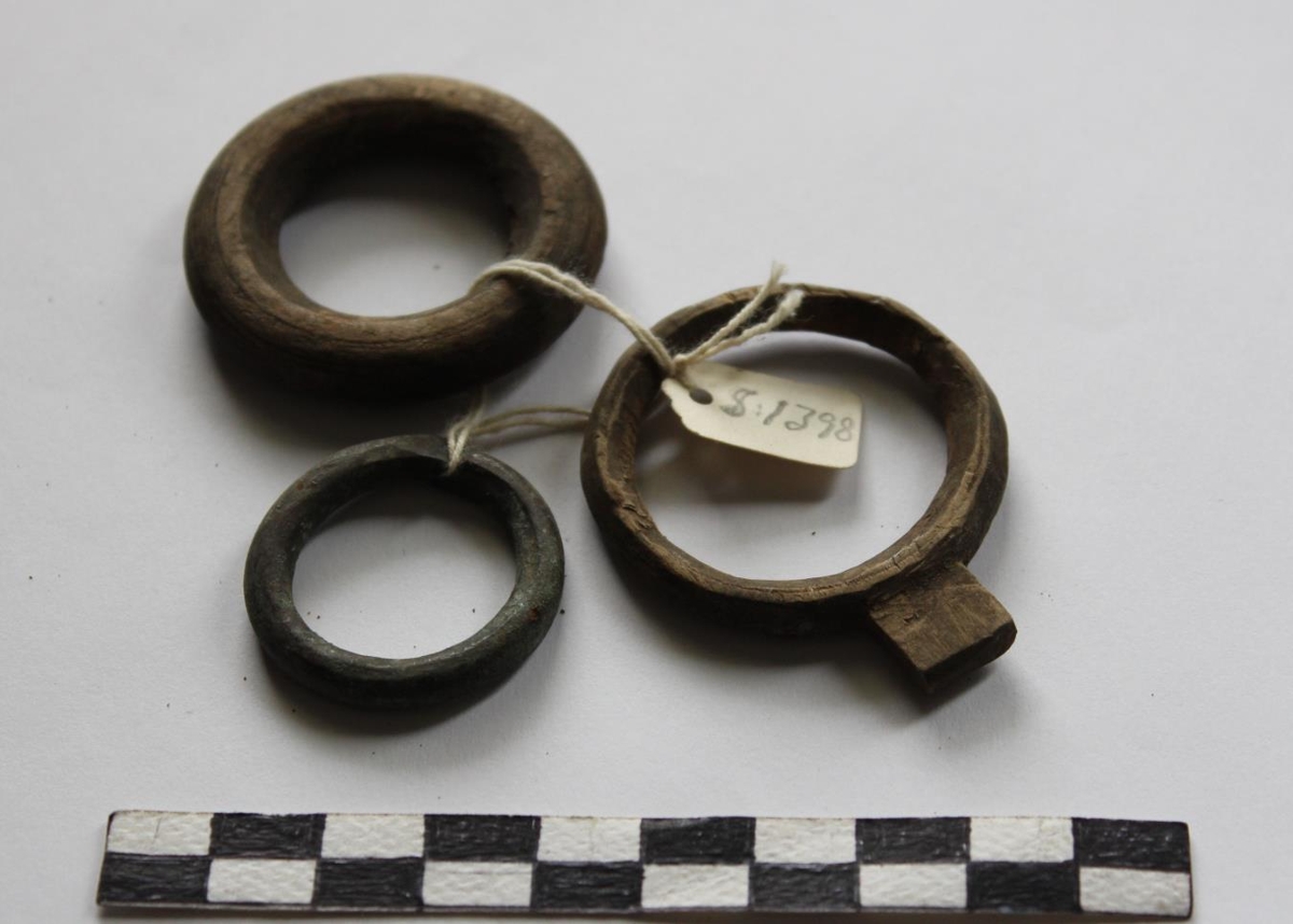Fjögur hringmót ( 3 tré, 1 blý). Gefið af Ólafi Sveinssyni í Botnum í Meðallandi minjar frá koparsmíði afa hans, Steingríms Jónssonar á Fossi á Síðu (1829-1923).