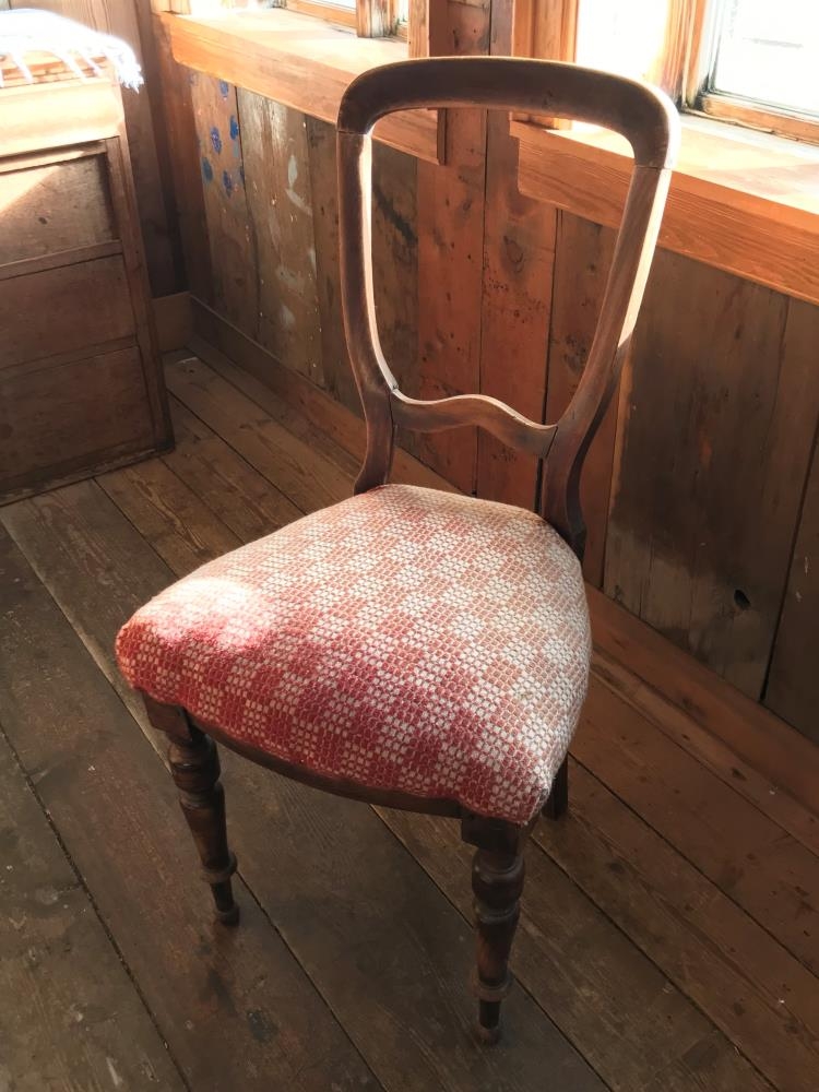Stofustóll, með háu baki, "opnu baki" og renndum löppum. Hefur verið klæddur í setu með salúnsvefnaði. Nú gjörslitið. Gefendur Páll Ævar Pálsson tannlæknir í Kópavogi, Stefán Pálsson og ( Bergþóra) Karen Pálsdóttir nú búsett á Spáni. Úr búi Páls Sigurðssonar bónda í Skammadal í Mýrdal og Bergþóru Sveinsdóttur konu hans. Kom frá dánarbúi móðurbróður þeirra systkina, Sveins Pálssonar í Blönduhlíð 7, Reykjavík, sem dó 2003. Einnig úr búi Ársæls Sigurðssonar skólastjóra og Sigurbjargar Pálsdóttur, Blönduhlíð 7.