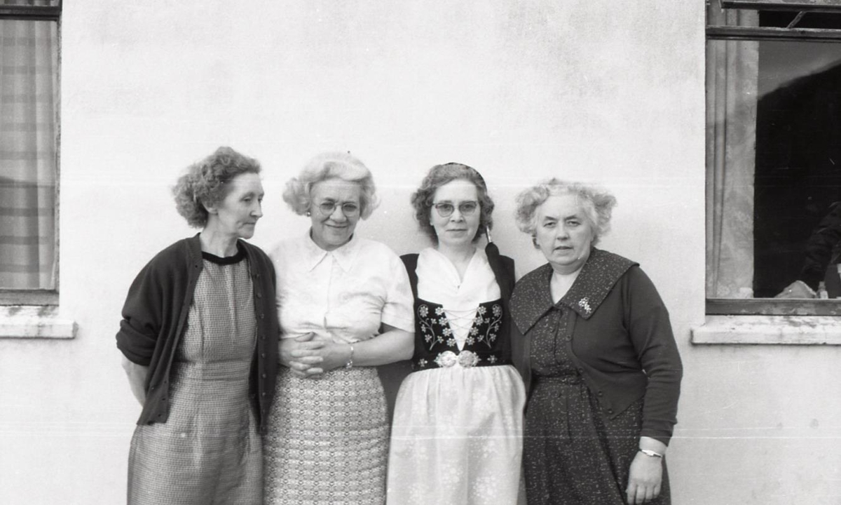Frá vinstri. Margrét Ólafsdóttir á Steðja í Reykholtsdal, Sigríður Guðjónsdóttir í Reykjavík, Unnur Guðjónsdóttir á Kleifum í Gilsfirði og Guðlaug Guðlaugsdóttir á Efri-Brunná í Saurbæ.