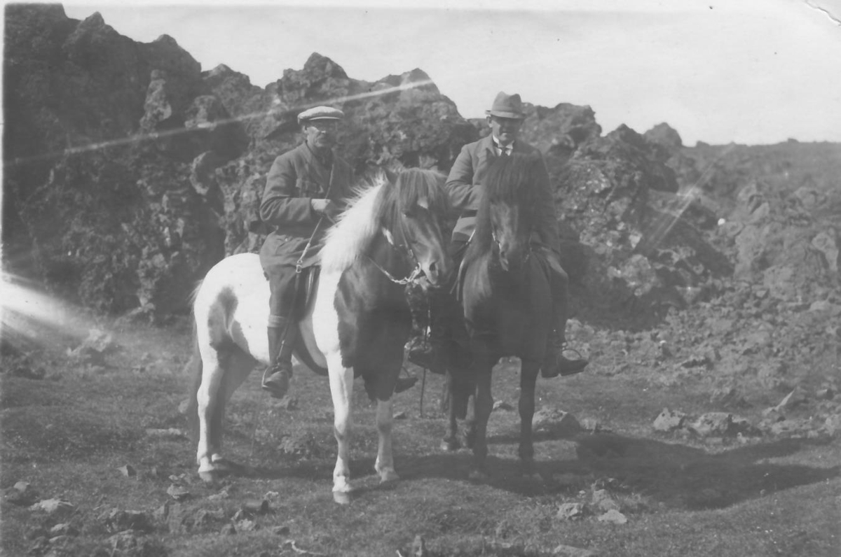 Böðvar Böðvarsson go Þórarinn Böðvarsson á hestbaki í nágrenni Hafnarfjarðar.