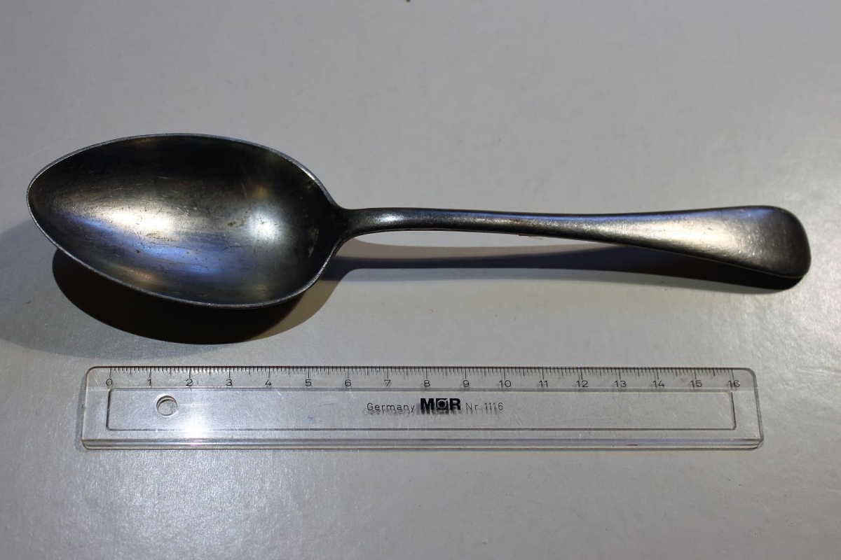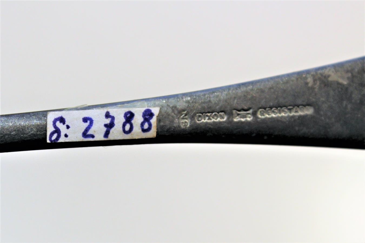 Matskeið, NS. Dixon. Resitarns, merkt V. Bjarni Gestsson, Grænumýri 17, Akureyri, tengdasonur Kristjáns Bjarnasonar og Kristínar Friðriksdóttur á Norður-Hvoli í Mýrdal gaf, úr eigu Vigdísar Ingvadóttur umferðarkonu á Hvoli (1864-1957). Honum gaf Kristín Fririksdóttir.