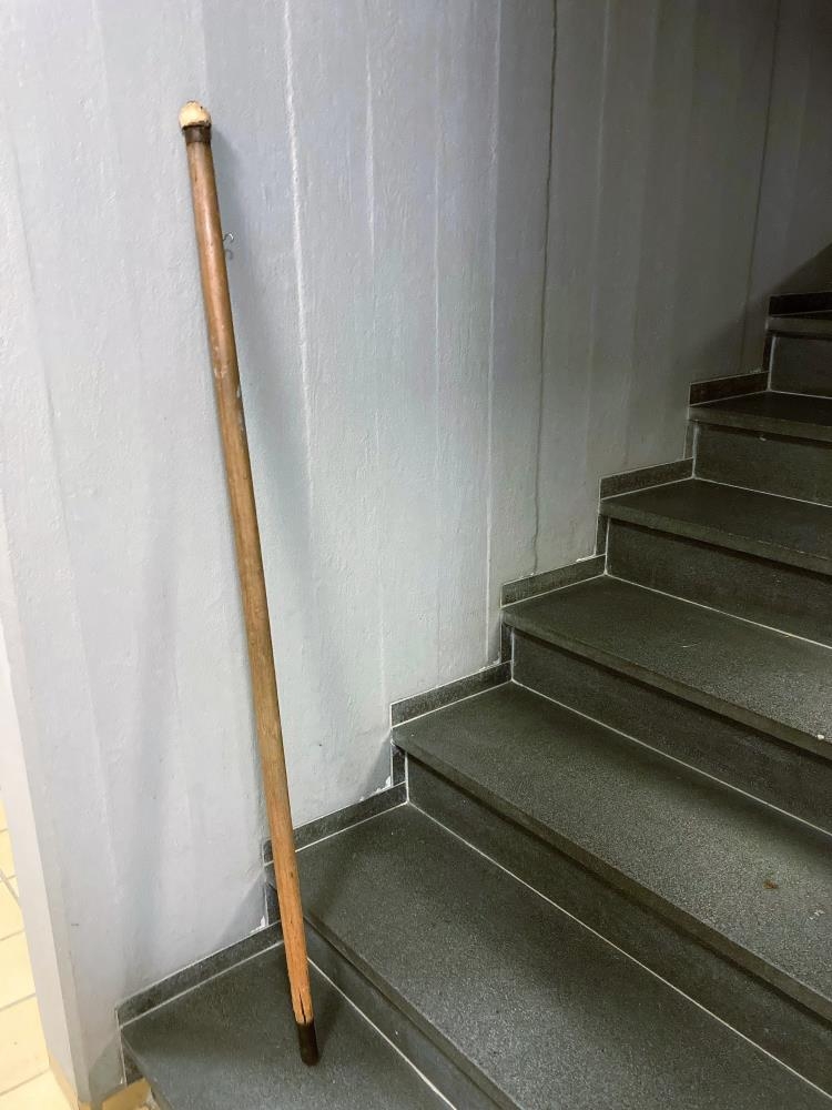 Göngustafur Eyjólfínu Eyjólfsdóttur konu Árna í Heiðarseli,til að nota á vetrum. Þetta er stór og nokkuð sver húnastafur. Frá Árna Sigurðssyni í Heiðaseli.