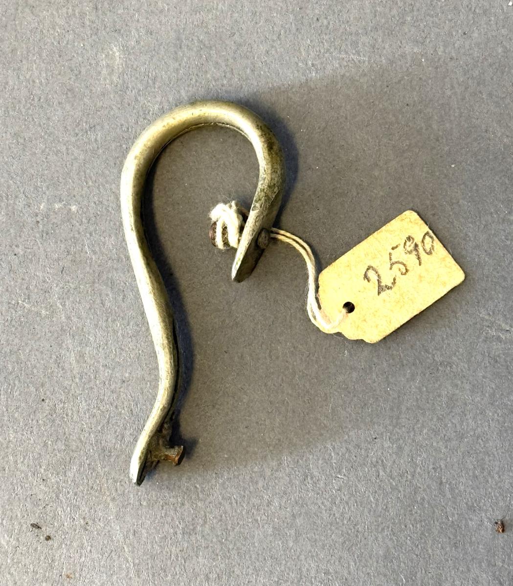Handarhald af bolla. Smíðað úr nýsilfri af föður gefanda, Ólafi Jónssyni í Skarðshlíð.