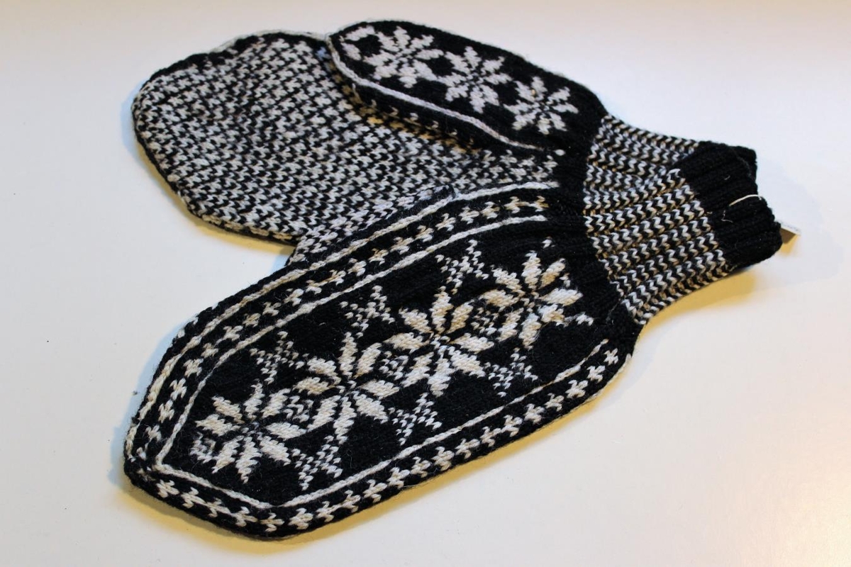 Rósavettlingar, prjónaðir af Jóni Einarssyni á Núpi u. Eyjafjöllum. Úr eigu Sigmundar Þorgilssonar skólastjóra, manns Bjargar, d.1968