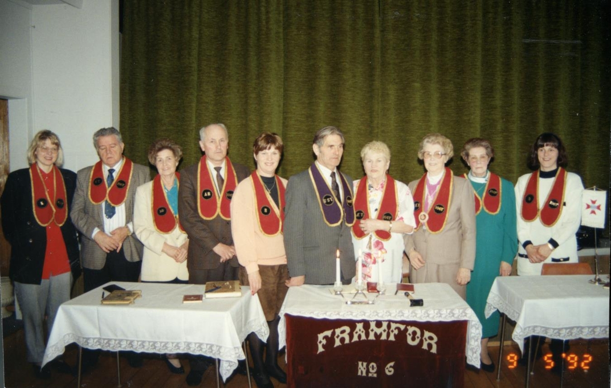 Fundur í stúkunni Framför nr. 6 í Garði, haldinn í Samkomuhúsinu í Garði árið 1992. Frá vinstri: Sólveig Björk Gränz, Guðbergur Ingólfsson, Magnþóra Þórarinsdóttir, Magnús Gíslason, Kristjana H. Kjartansdóttir, Kjartan Ásgeirsson, Marta Guðrún Halldórsdóttir, Steinunn Sigurðardóttir Sólveig Sigrún Oddsdóttir og Jóhanna Amelía Kjartansdóttir.
