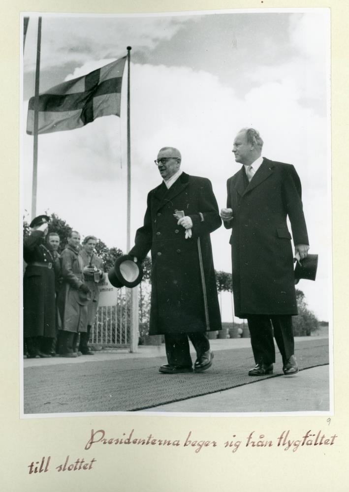 Skýringar á sænsku við flestallar myndirnar.: Presidenterna beger sig från flygfältet till slottet.