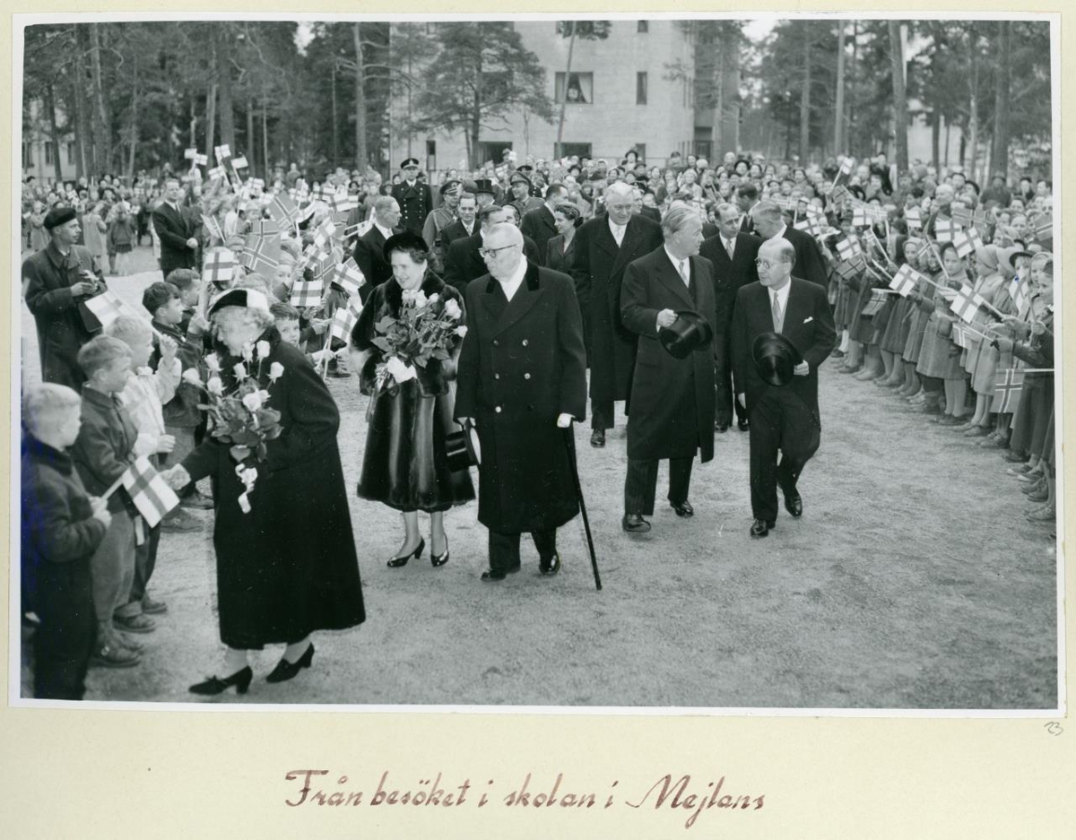 Frá heimsókn forsetanna og fylgdarliðs í skólann í Mejlans.