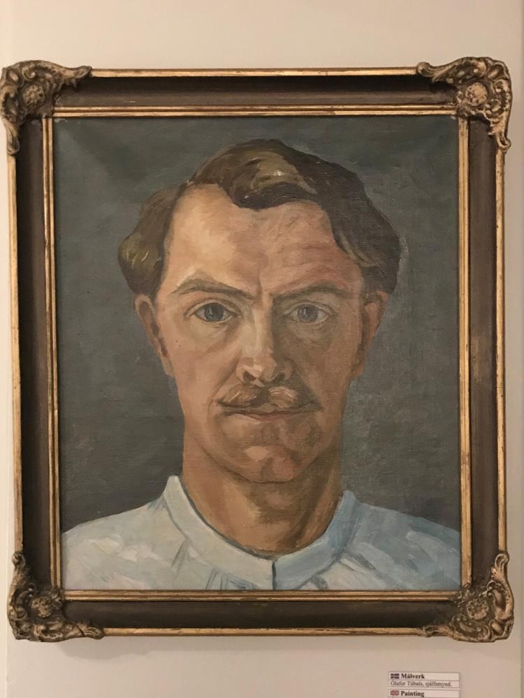 Olíumálverk, sjálfsmynd Ólafs Túbals, 34 x 40 cm. Innrammað. Skráð inn safn málverka Ólafs Túbals í Múlakoti í Fljótshlíð. Reynir Ólafsson, sonur hans, kom með málverkin að Skógum 1987 til sýningar. Gerði eins vel ekki ráð fyrir að taka þau aftur en formleg gjöf með bréfi fór ekki fram. Síðar tjáði hann munnlega við Þórð Tómasson að það væri vilji sinn að Skógasafn varðveitti málverkin. Nú er Reynir dáinn og mál til komið að skrá þessi dýrmætu verk föður hans inn í safnið. Jóndi, Jón Kristinsson á Lambey, var ráðgjafi Reynis um þessa ráðstöfum.