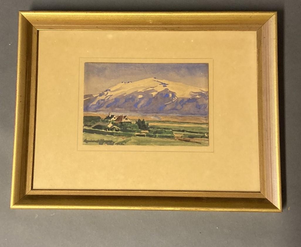 Vatnslitamynd Ásgríms Jónssonar af Eyjafjallajökli séðum frá Múlakoti 1913. Stærð: 15,2 x 10,4 cm, í ramma 32,5 x 24,2 cm. en nú færast þau í heildarskrá. Guðbjörg Lilja Túbals í Múlakoti gaf safninu.