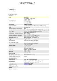 Viðtæki, tegund: YAESU, gerð: FRG-7. Framleiðsluland: Japan, tíðnisvið: 500 kHz – 30 mHz mHz, stærð B 34 - H 15 - D28 sm. Efni: Ál undirstaða, ljósgrár kassi og dökkgrá framhlið.