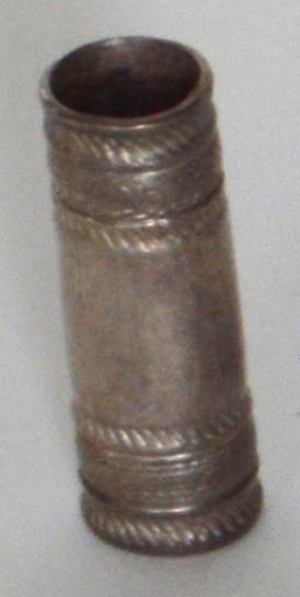 Skúfhólkur úr silfri, 2,3 cm að lengd, þverm. 0,8 cm. Þetta er vafalaust elsti skúfhólkur, er safnið hefur eignast. Rósa Sighvatsdóttir á Kleif í Breiððdal gaf hann Geirlaugu Filippusdóttur. Amma Rósu hafði átt hann. Gefandi: Geirlaug Filippusdóttir.