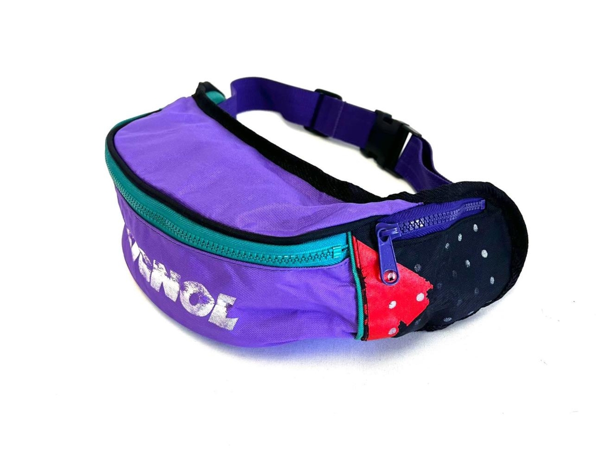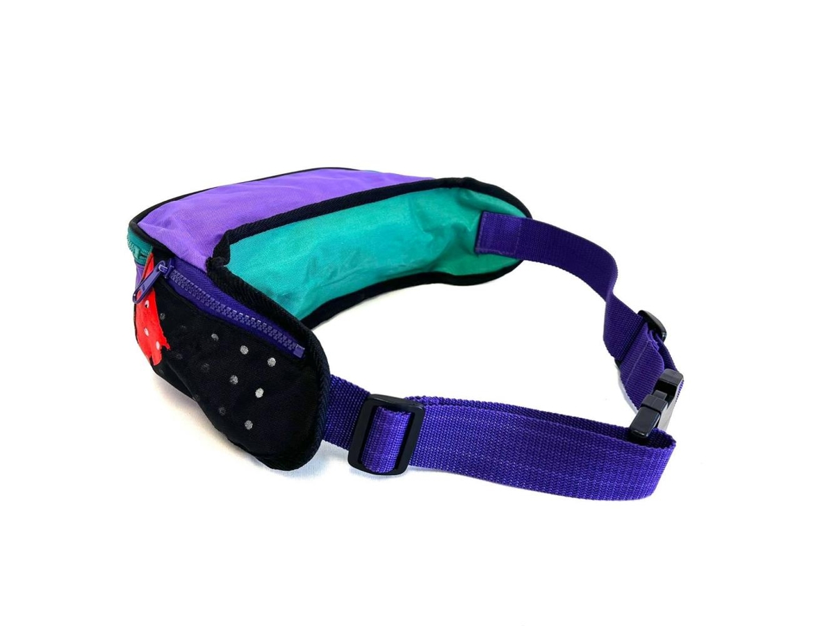 Mittistaska, aflöng með rennilás og plast klemmu svo hægt er að klemma um mittið. teg. Rosignol. Fjólublá, græn og rauð