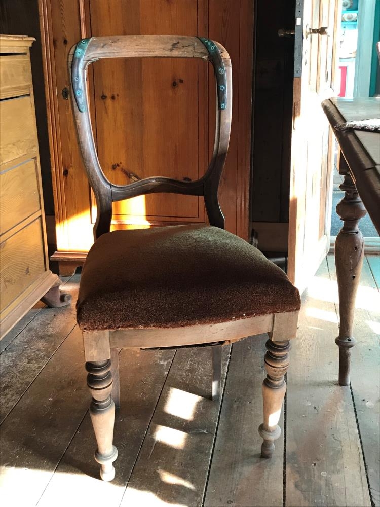 Tveir stofustólar, gormar í setu. Báðir uppgerðir af Sigurjóni Kristjánssyni í Forsæti í Flóa. Annar með koparspöngum frá eldri viðgerð. Þeir eru útlendir, að því er safnvörður hyggur og frá um 1880.