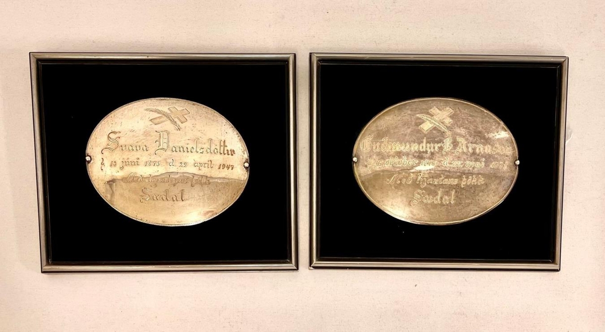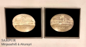 Sigríður Schiöth sendir Minjasafninu á Akureyri tvo platta. Haraldur Sigurðsson afhenti.