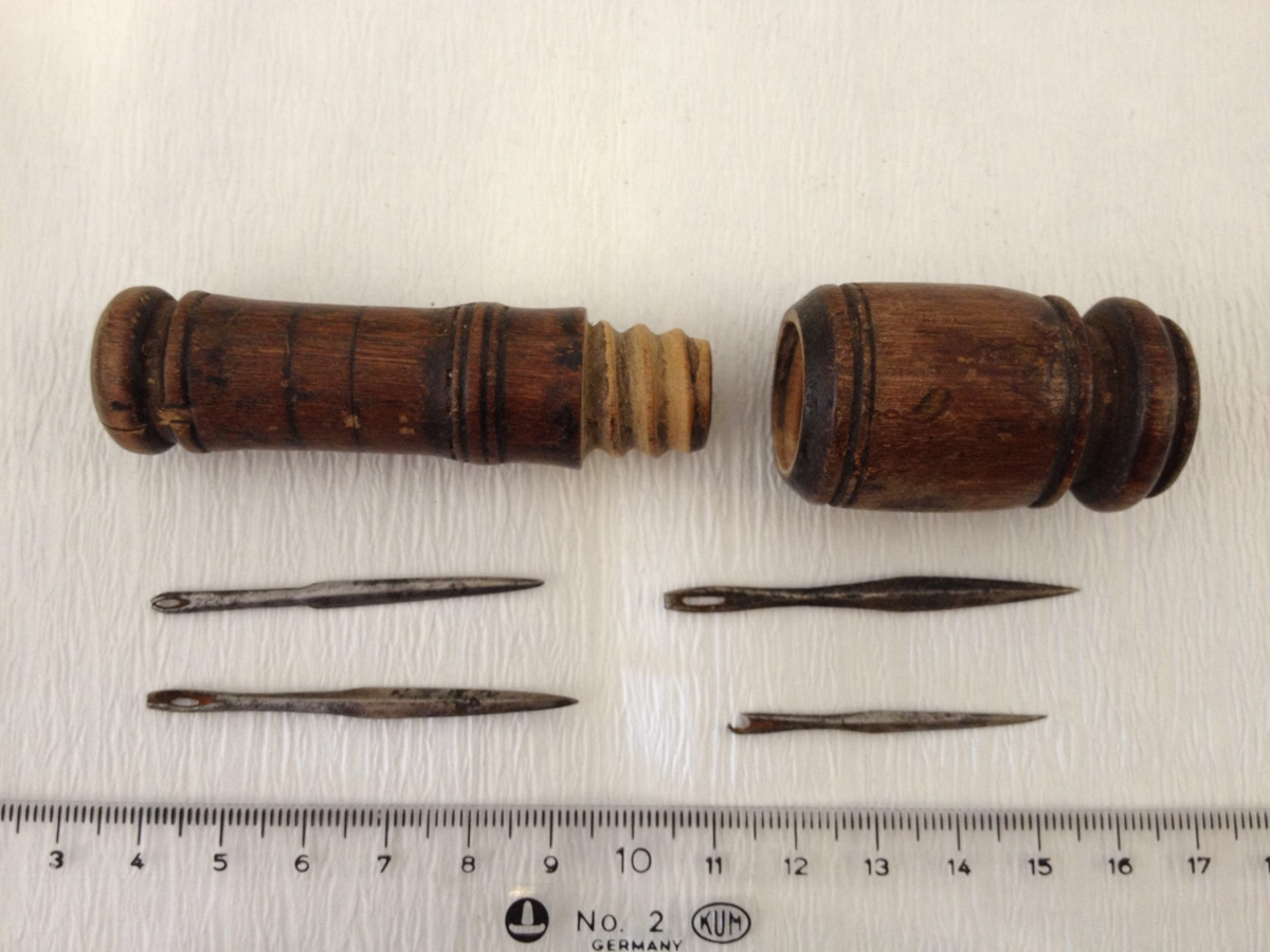 Nálhús, rennt úr tré. Lengd 10,2 cm. Harðviður. Sigurður Jónsson bóndi á Maríubakka, afi gefanda var rennismiður. Kona hans Guðrún Hansvíumsdóttir, átti nálhúsið. Í því eru 4 skónálar, ein augabrotin. Gefendur: Guðni S. Sigurðsson bóndi á Maríubakka og fjölskylda hans.