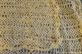 Langsjal úr togi, unnið (heklað) af Kristínu Sigurðardóttur á Búlandi. Sjalið er einlitt, hvítt. Með fylgir hnykill með togþræði.