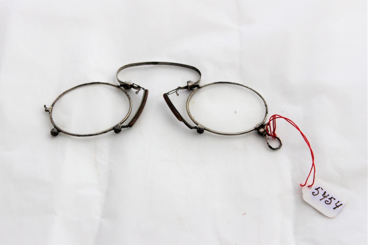 Gleraugu, lonniettur, séra Ólafs Finnssonar í Kálfholti, Rangárvallasýslu, d. 1920. Spöng vantar.