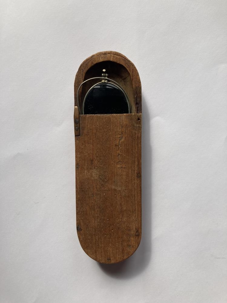 Gleraugnahús og gleraugu (sólgleraugu) Odds Sigurðssonar í Skál. Lítið draglok glatað. Gefið af Jóhönnu Pálsdóttur frá Skál