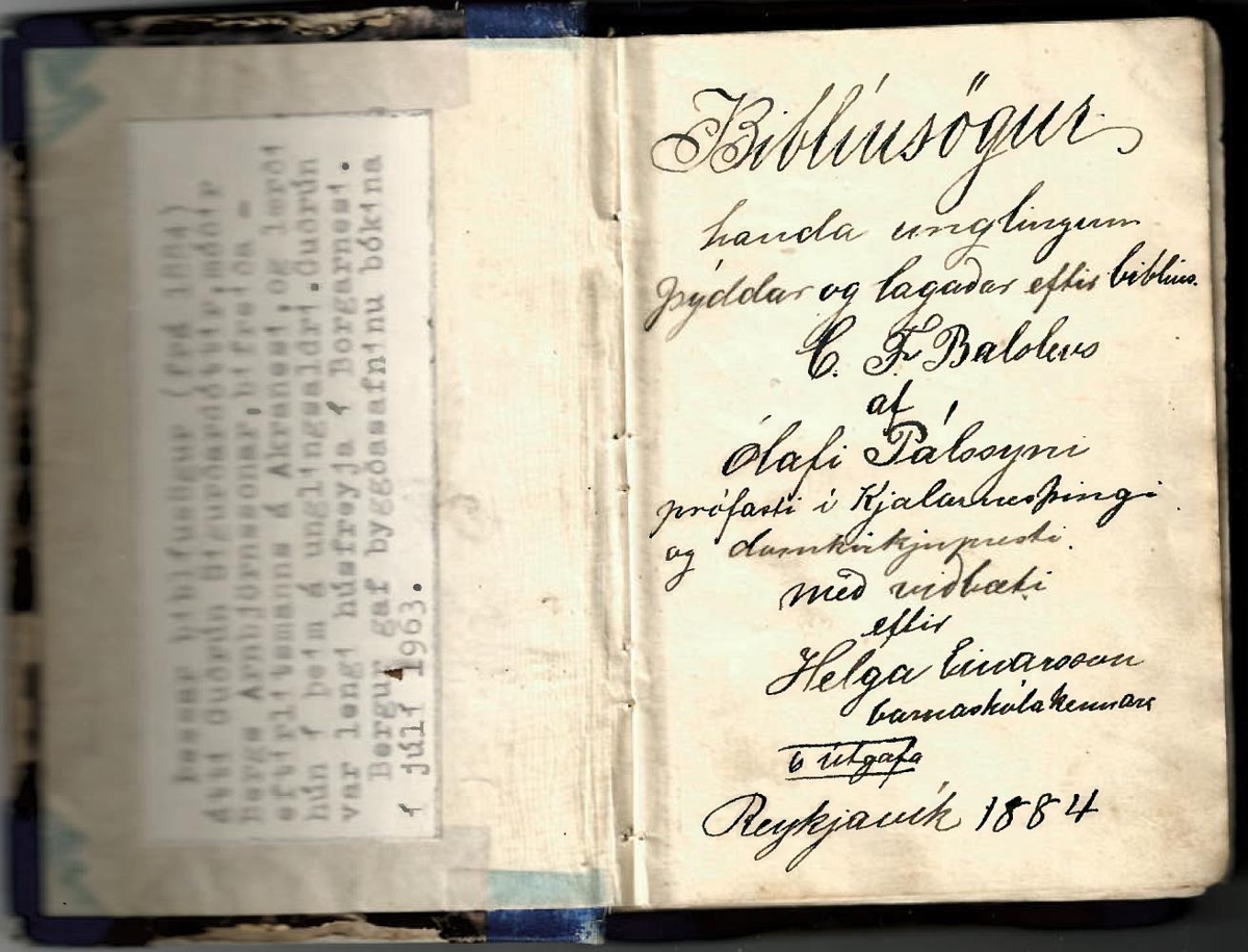 Biblíusögur handa unglingum / lagaðar eptir biblíusögum C.F. Balslevs. - 6. útgáfa. -256. bls.