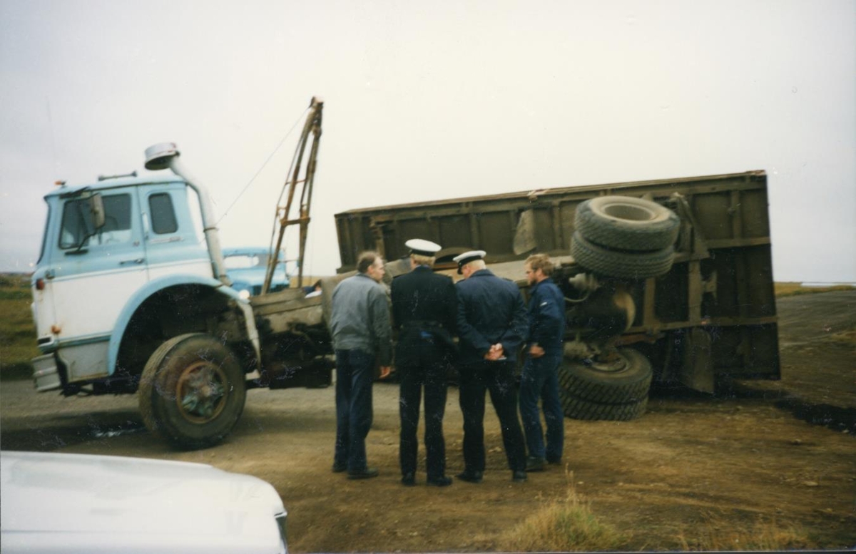 Umferðaróhapp. Þekkja má Ingimund Arnar Markússon frá Bjargarsteini í Garði á spjalli við lögregluþjónana.