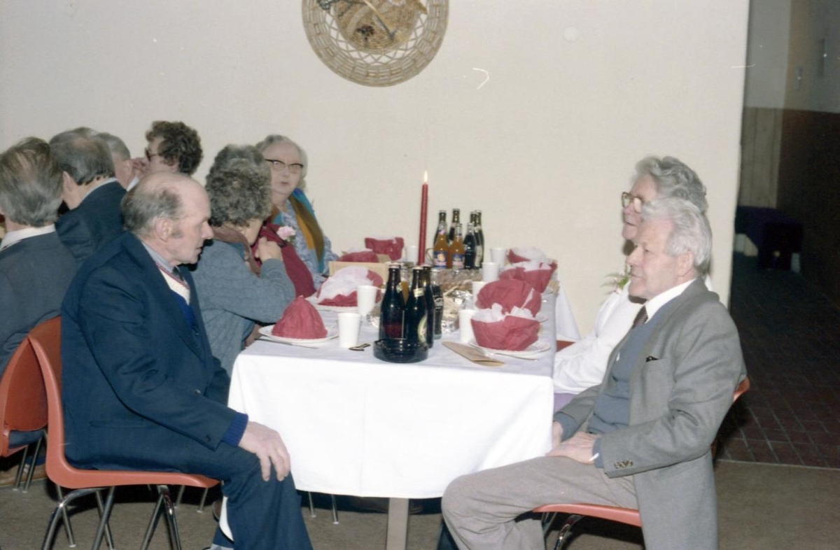 Þorrablót í Grundarfirði. Fremst sitja þeir Guðmundur Guðmundsson Hallbjarnareyri og Ingvar Agnarsson Kolgröfum. Við vegginn situr Bergþóra Sigurðardóttir ljósmóðir (SuN).