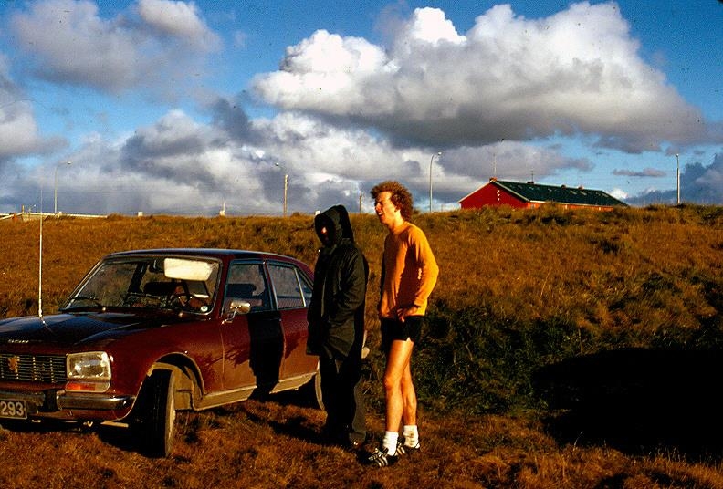 Ólafur Júlíusson til hægri. Peugeot bíll til vinstri bílnúmer...293.