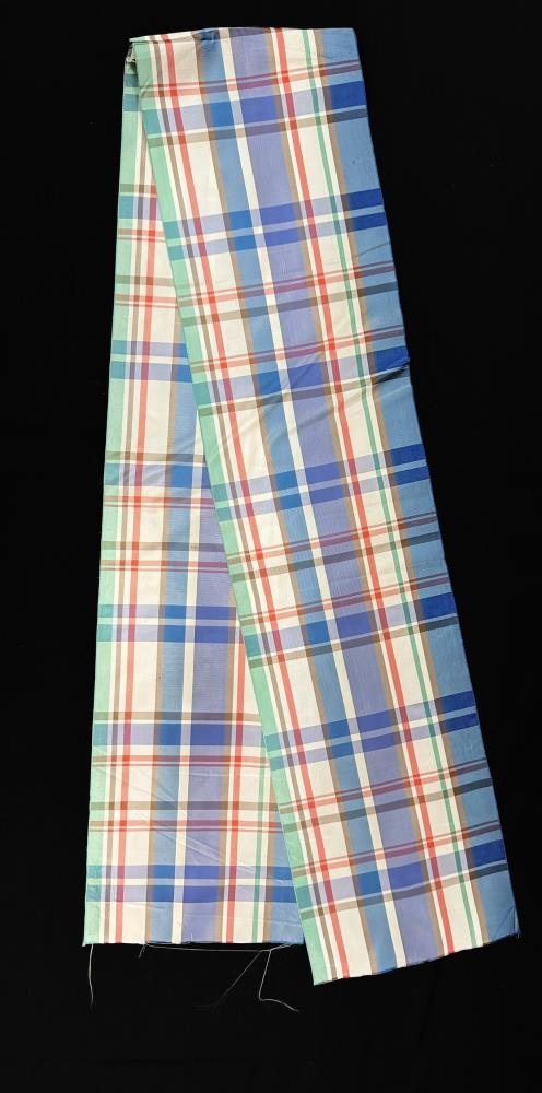er að það hafi verið notað sem slíkt. Slifsið er köflótt í í bláum, rænum,