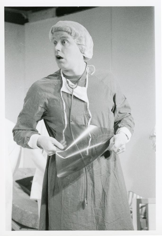Ástþór Sigurðsson í hlutverki sínu í leikritinu „Allra meina bót“ eftir Patrek og Pál. Litla leikfélagið í Garði setti upp leikritið árið 1988 og sýndi í Samkomuhúsinu í Garði.