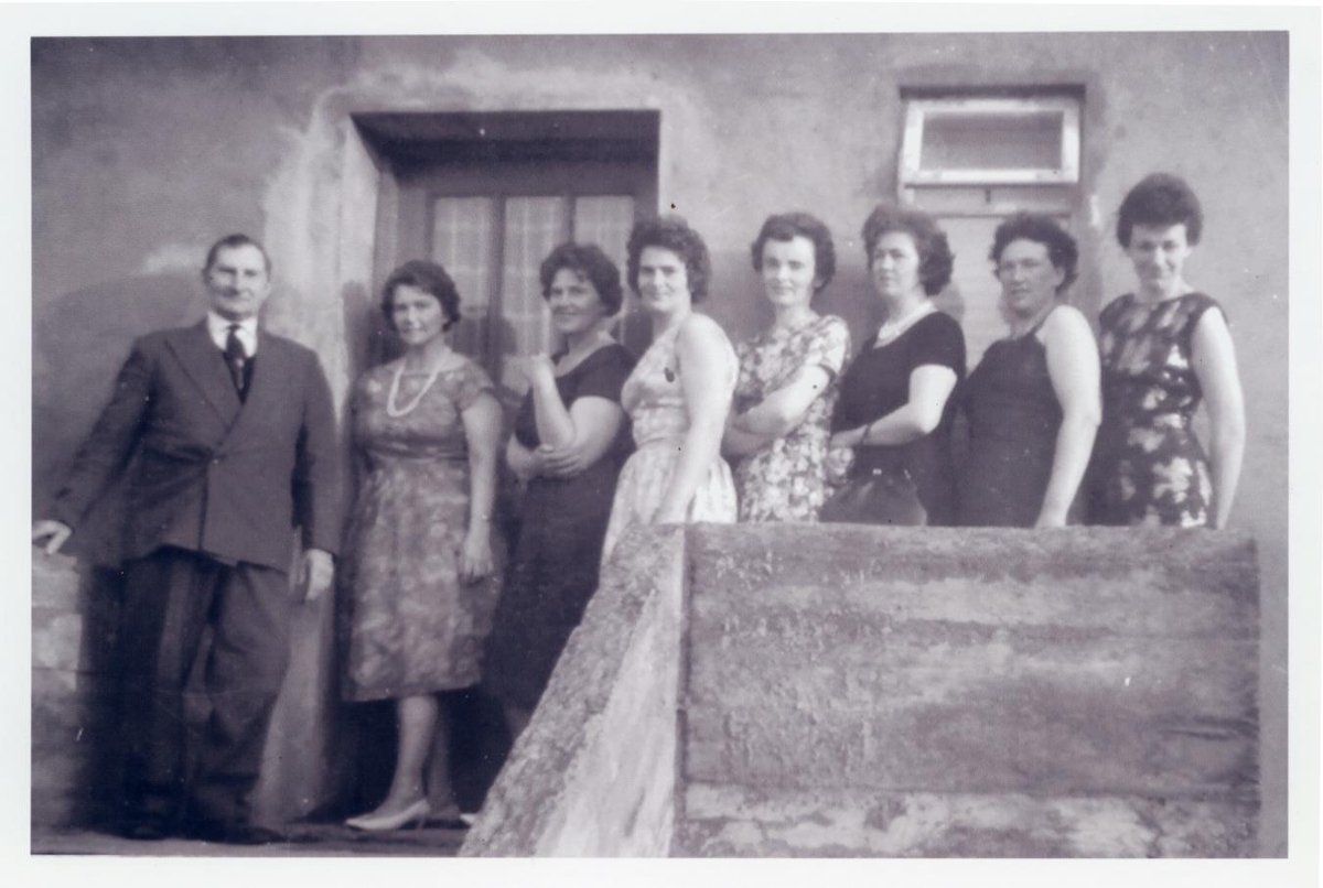 Fjölskyldan frá Húsatóftum í Garði. Frá vinstri: Ættfaðirinn Þórarinn Guðmundsson með dætrum sínum og tengdadætrum, Jenný Magnúsdóttir, Magnþóra og Þórunn Þórarinsdætur, Ásdís Sigurgeirsdóttir (kona Bjarna), Guðbjörg Jónsdóttir (kona Þórarins yngri), Guðrún Hermannsdóttir (kona Guðmundar) og Ásta Einarsdóttir (kona Magnúsar).