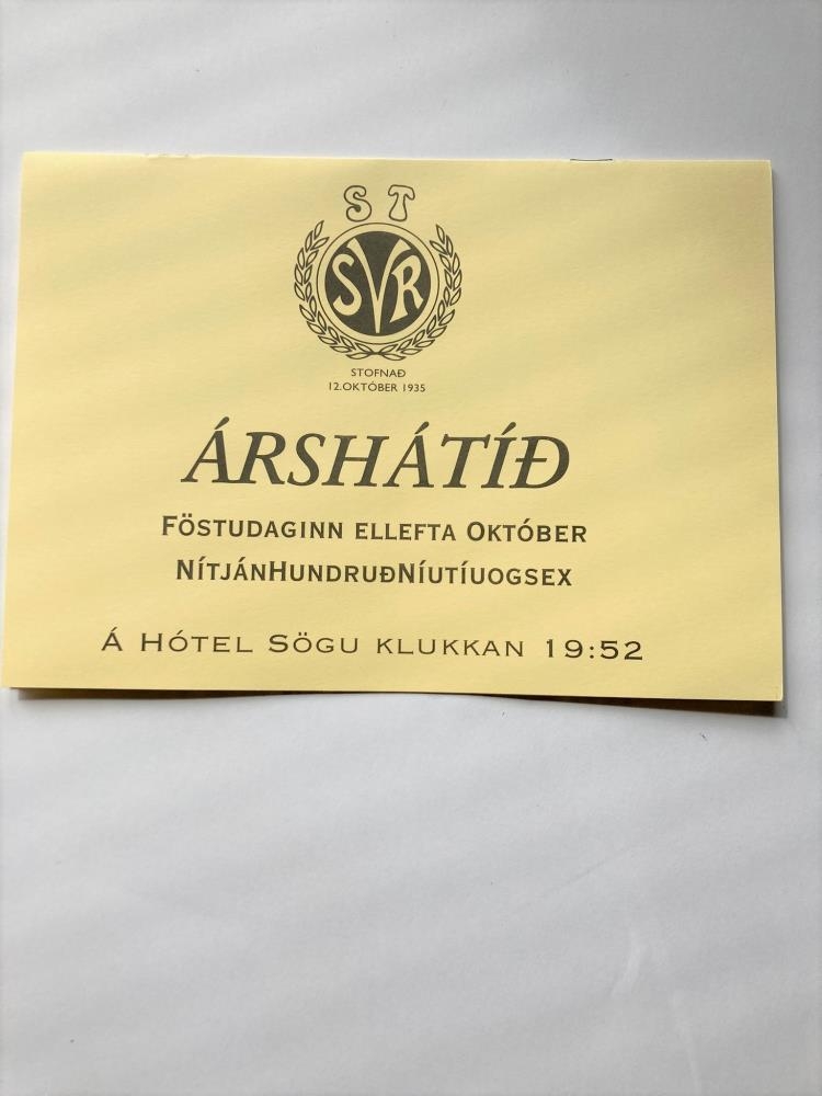 Boðskort/dagskrá Árshátíðar Starfsmannafélags SVR 11.okt 1996.