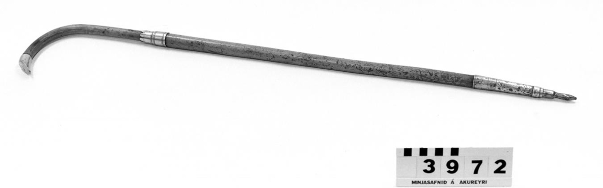 með þremur silfurhólkum og broddi. Á hólknum sem er á handfanginu
