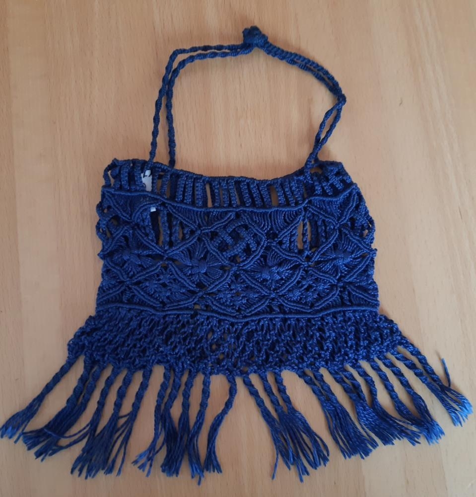 Lítið veski, budda eða poki sem er hnýtt. Litur fagurblár, kögur 4 cm.