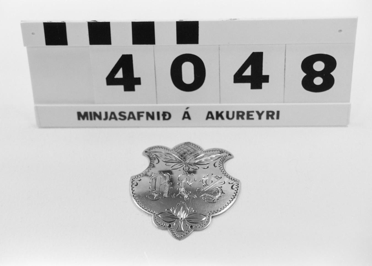 silfur ágrafinn með upphafsstöfunum "B I S". Aftan á skildinum