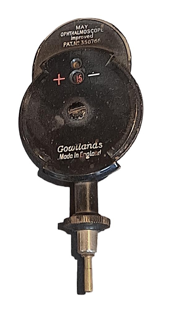 Efsta stykkið af augnspegli, einhverskonar mæliskífa.