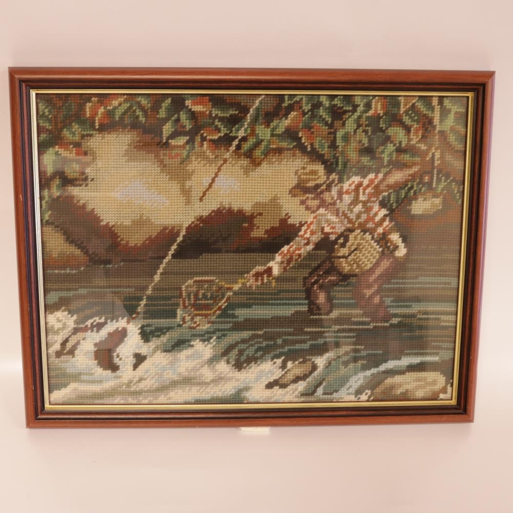 Þessa fallegu útsaumsmynd gerði Sigrún Oddsdóttir frá Nýjalandi í Garði. Sonur hennar, Ásgeir Hjálmarsson gaf myndina á Byggasafnið árið 2021.