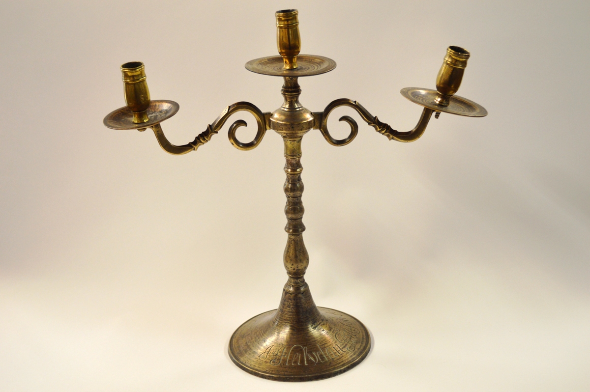 Altarisstjaki úr kopar eða koparblendingi, stórgallaður, því að brotið er ofan af honum og báðar hliðarálmur vantar. Á stétt hans er grafið: Hálfdan Gíslason, sem lengi var prestur í Eyvindarhólum (1712-1785). Stjakinn er líklega úr Steinakirkju. Var lengi á Þorvaldseyri, hjá Þorvaldi Björnssyni, síðan á Núpakoti.