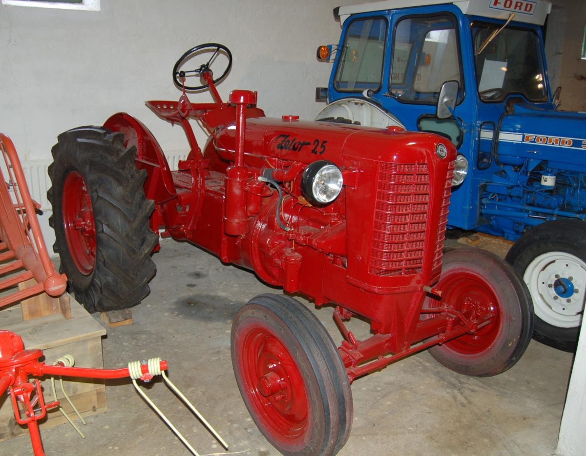 Hér stendur fyrsta Zetor-dráttarvélin sem kom til Íslands. Þetta er líka fyrsta dísel-hjóladráttarvélin sem landsmenn eignuðust!