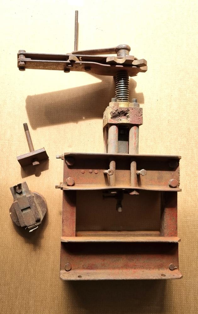 Þessi gripur var alltaf kölluð "Rauða pressan". Öxullinn í henni er úr gamla Ford sem til var í Villingaholti, Kristján renndi í hann gengjurnar. Kristján bjó pressuna til og var fyrsta verkefni hennar að stansa spólurnar í spunavélarnar. Seinna fékk hún ýmis hlutverk m.a.að klippa og gata oft ótrúlega þykkt járn.