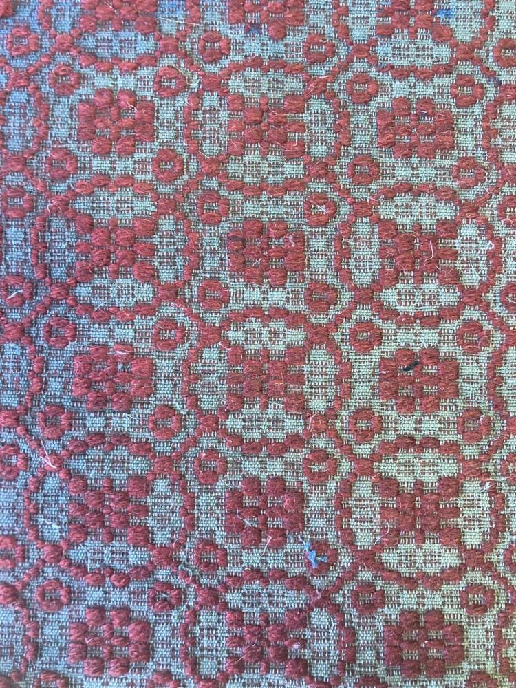 Salúnsprufa. Ofið um 1920 af Guðbjörgu Guðjónsdóttur í Hamragörðum undir Eyjafjöllum. Gefið af Helga Erlendssyni á Hlíðarenda í Fljótshlíð 05.11.1963