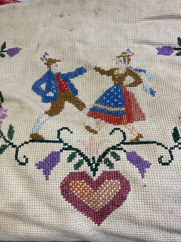 Púði. Saumaður af Matthildi Elísabetu Gottsveinsdóttur frá Suður-Vík. Hún rak gistihús á Höfðabrekku um árabil.