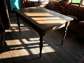 Stofurborð úr mahony, fætur renndir.