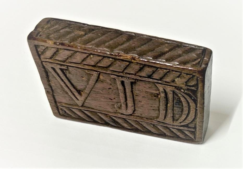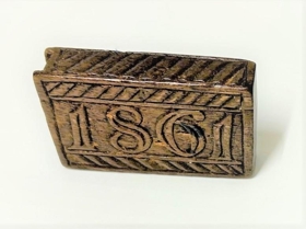 Útskorið nálhús með þremur hólfum, án renniloku. Upphafsstafirnir V I D á annari hlið, ártalið 1861 á hinni.
