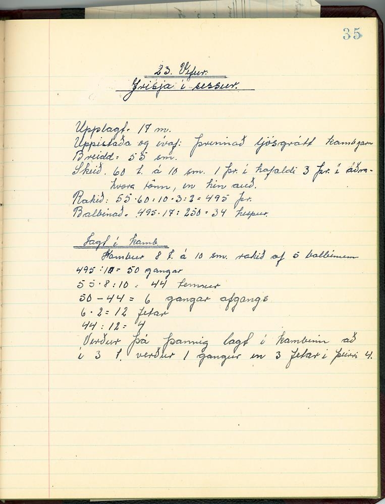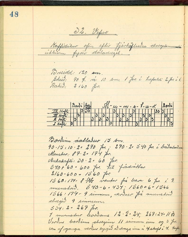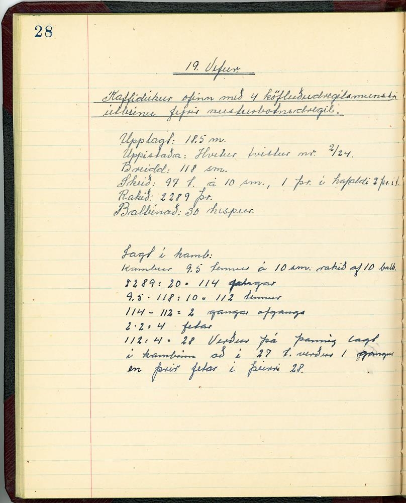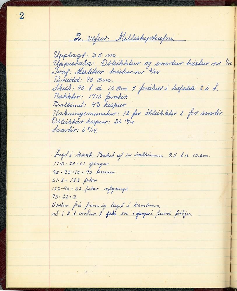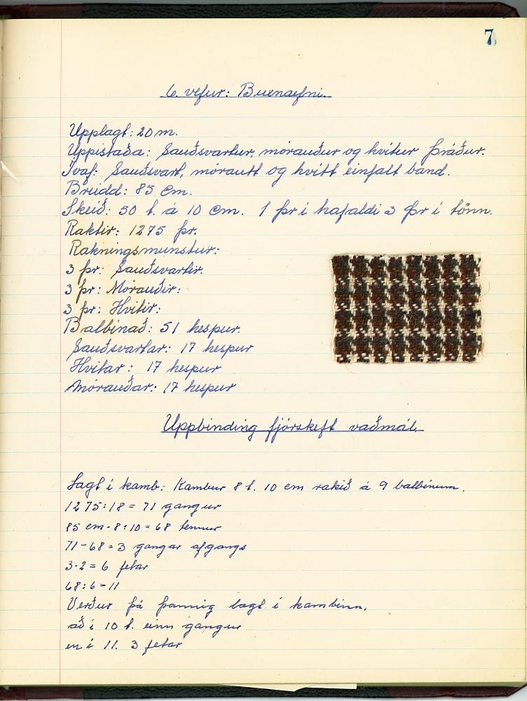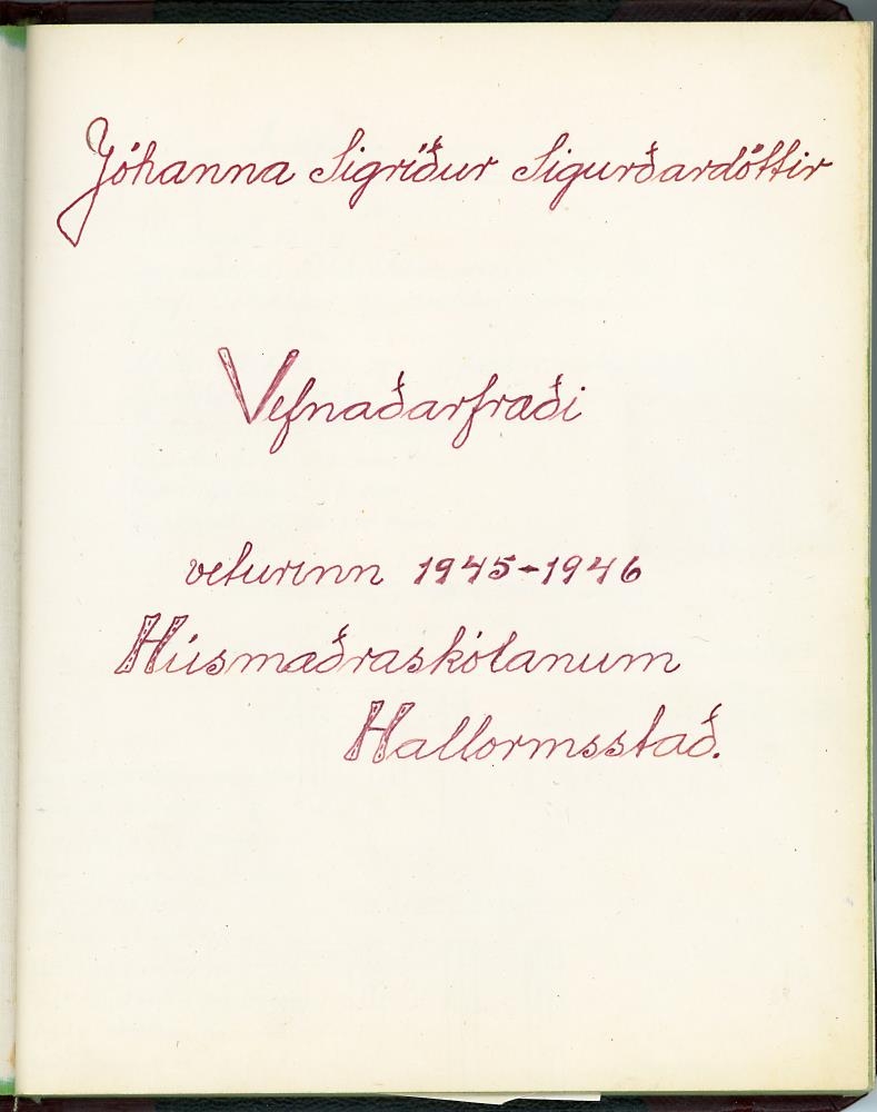 Stílabók / glósubók Jóhönnu Sigríðar Sigurðardóttur í Vefnaðarfræðum, þegar hún var í Húsmæðraskólanum á Hallormsstað veturinn 1945-1946.