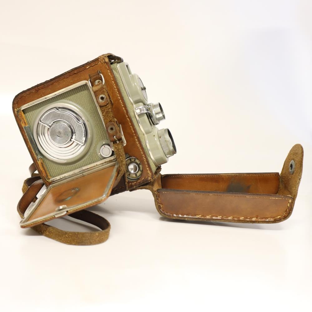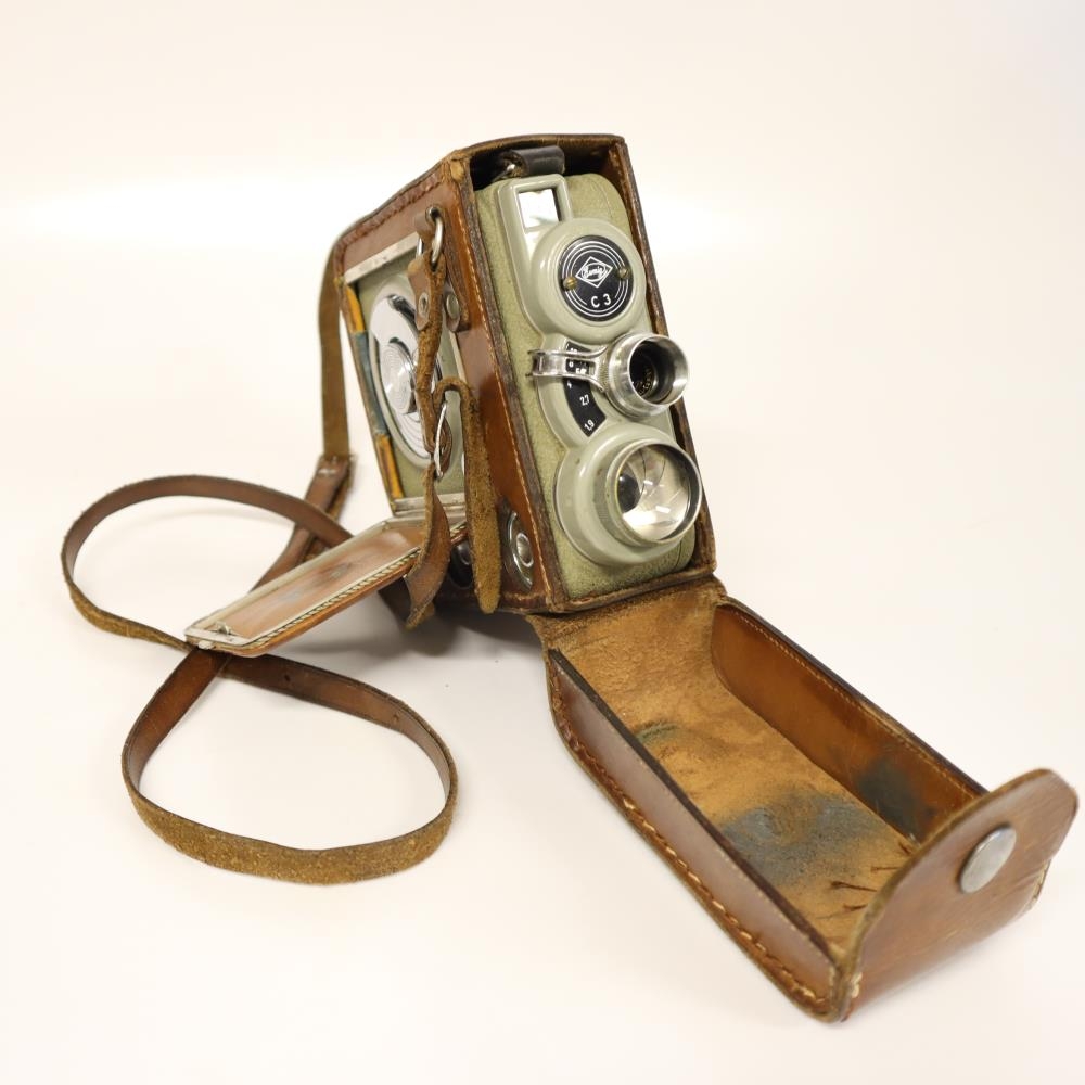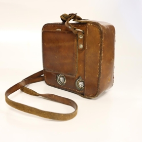 Myndbandsupptökuvél af gerðinni Eumig C3 8mm í brúnni leðurtösku. Fyrri eigendur voru hjónin Helga Þórdís Tryggvadóttir frá Bjarnastöðum í Garði og Eyjólfur Gíslason frá Miðhúsum í Garði.